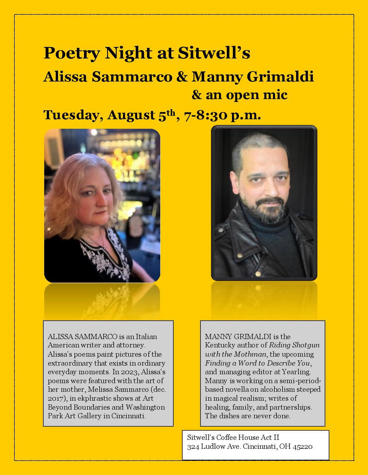 Admission FREE. Donations Encouraged. Book cost $18 .Refreshments served. Contact MoPoetry 513-344-0870 for details.